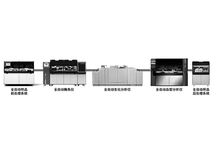 太原石健社区居家服务有限公司将自主研发的全自动样本全处理系统、全自动酶免仪、全自动血型分析仪、全自动样本回收系统与日立7600生化分析仪进行整合,设计为一套完整成熟的适合血站的全实验室自动化流水线系统的解决方案,满足临床全自动化的检测需求。